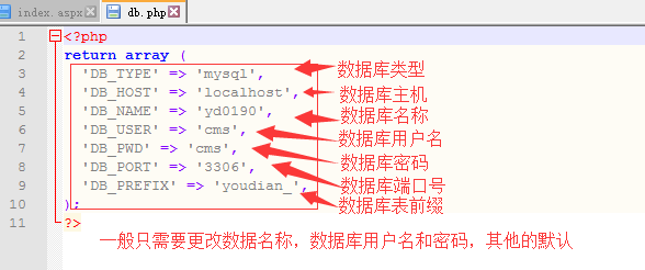 2 目录APP/CONF/DB.PHP 手动的填写数据库信息