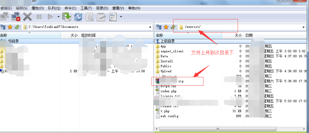 2、 FTP上传文件到wwwroot目录下面